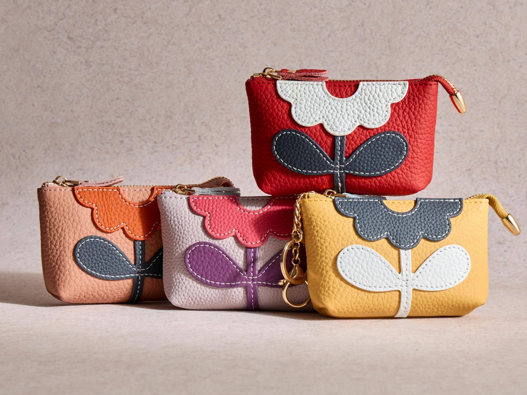 Women Flower Leather Zipper Pouch